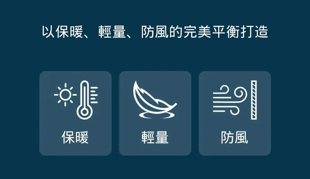 - 內裡運用 NASA 開發的蓄熱材質(Trizar 塗層技術),長效保暖並阻隔外部冷空氣
