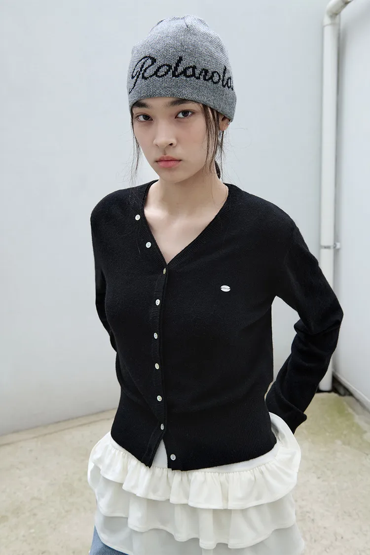 rola004貝殼扣小標針織開衫 深藍 灰 黑 咖 售價$2480精緻貝殼扣 貝殼小標尼龍49% 羊毛51%尺寸(cm)全長52,肩寬40,袖長61,袖口9.5,胸寬47以下為灰色穿搭👇🏻 以下為黑色穿搭👇🏻 以下為深藍色穿搭👇🏻 以下為咖色穿搭👇🏻