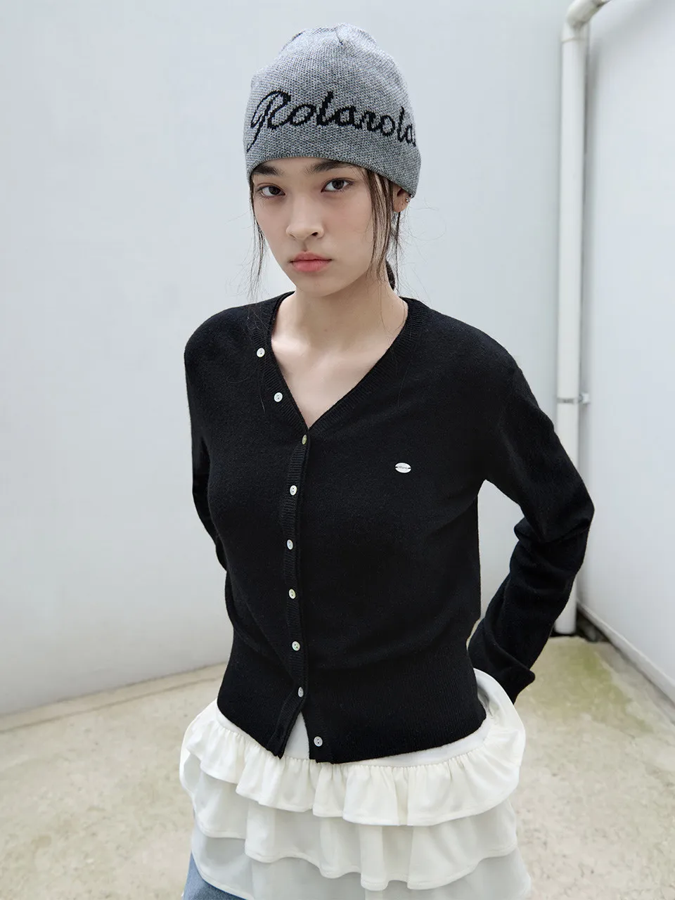 rola004貝殼扣小標針織開衫 深藍 灰 黑 咖 售價$1990精緻貝殼扣 貝殼小標尼龍49% 羊毛51%尺寸(cm)全長52,肩寬40,袖長61,袖口9.5,胸寬47以下為灰色穿搭👇🏻 以下為黑色穿搭👇🏻 以下為深藍色穿搭👇🏻 以下為咖色穿搭👇🏻