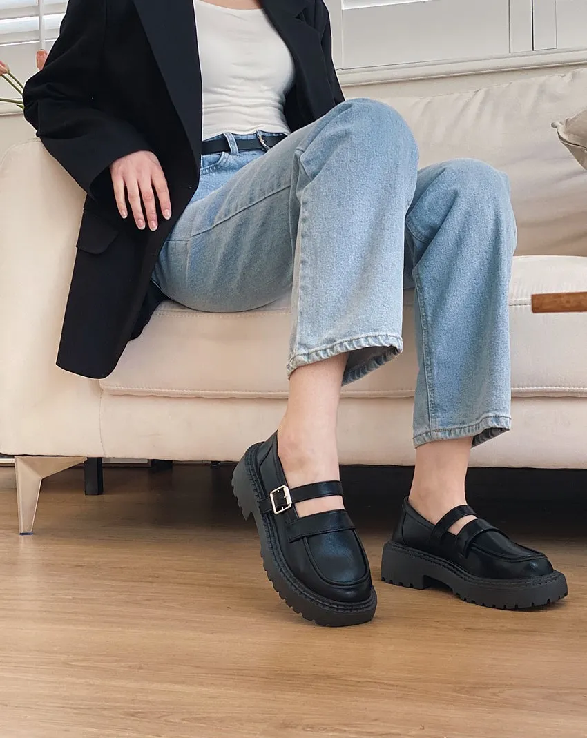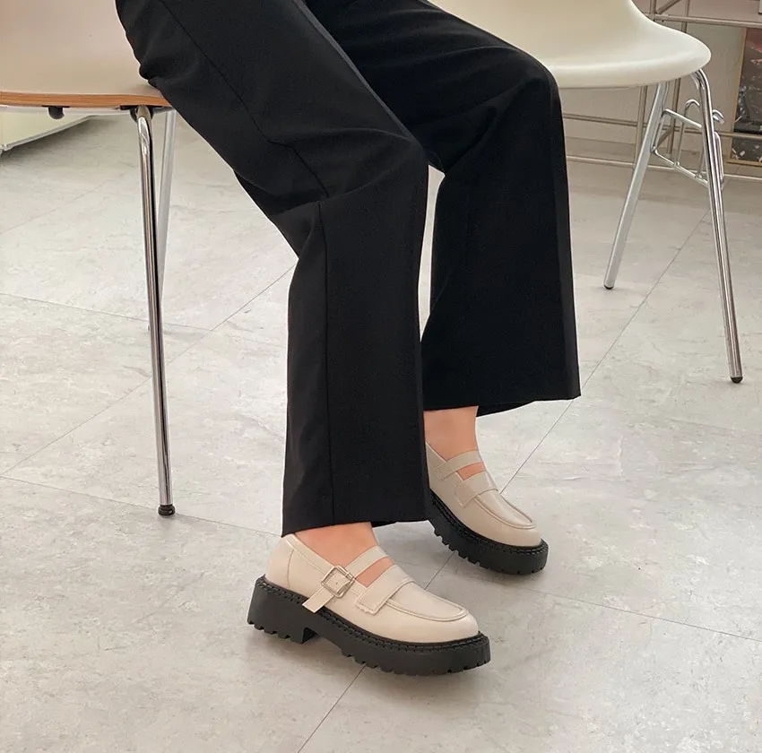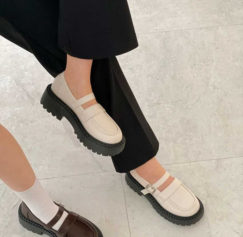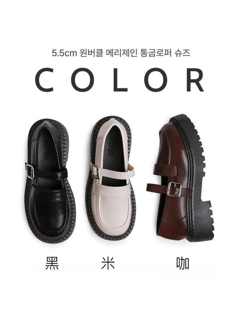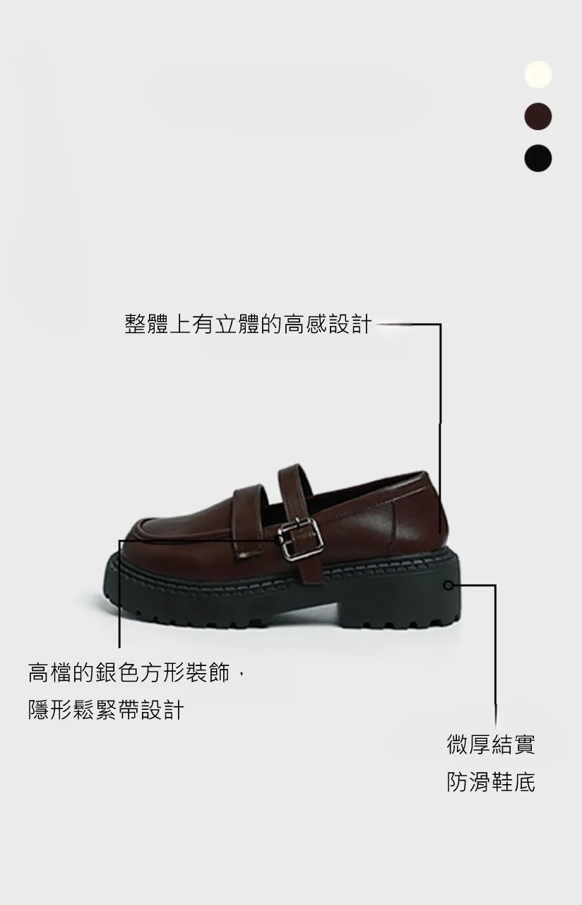 shoe009厚底一扣樂福鞋 米 咖 黑 225~250 售價$899鞋跟5.5cm復古時尚的西部靴子進化成現代時尚柔軟的鞋底減輕腳底的疲勞感做了防滑鞋底,可以保護鞋底,增加穿著舒適感。以下顏色,咖色 以下顏色,黑色 以下顏色,米色 以下顏色,如圖所示
