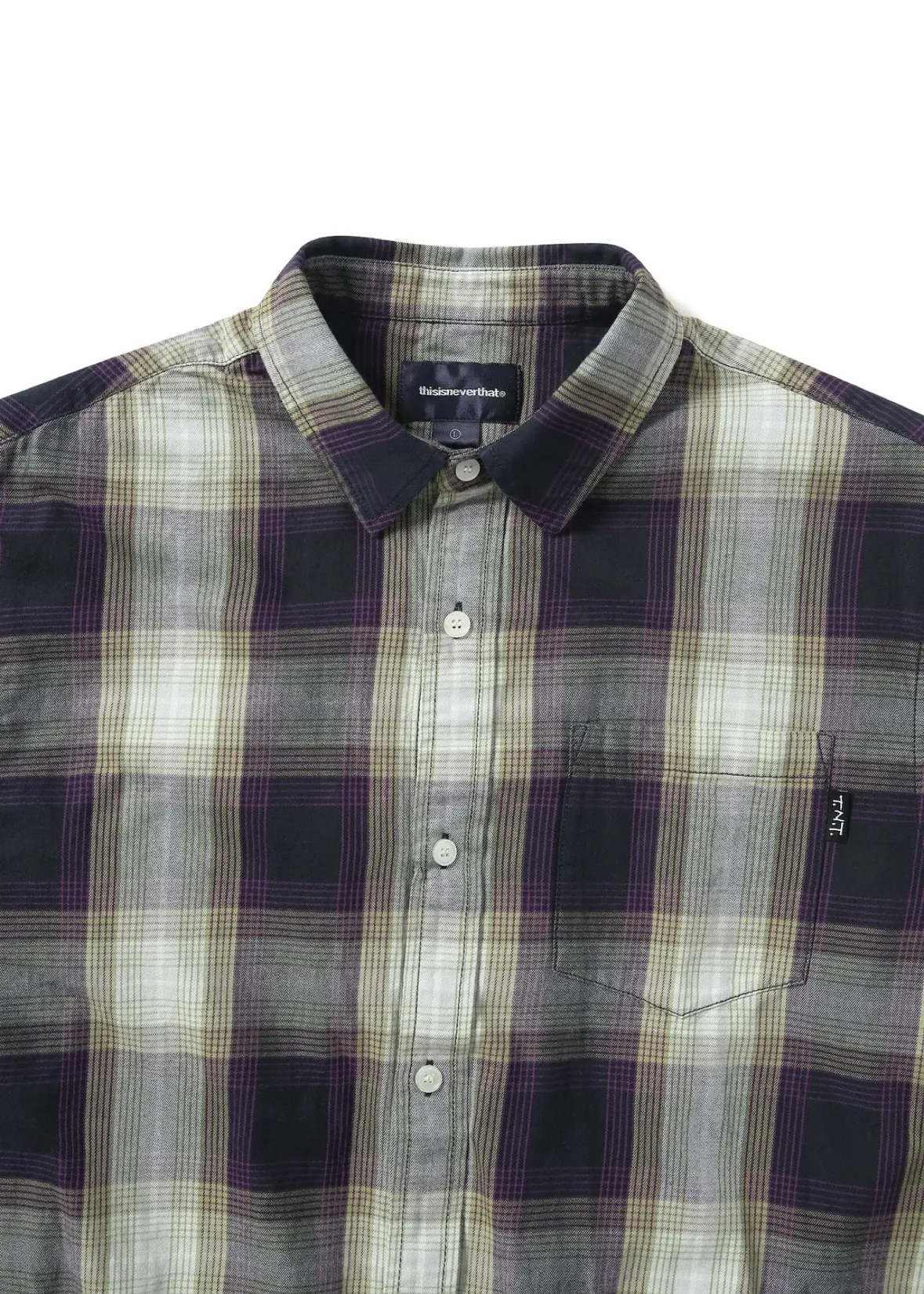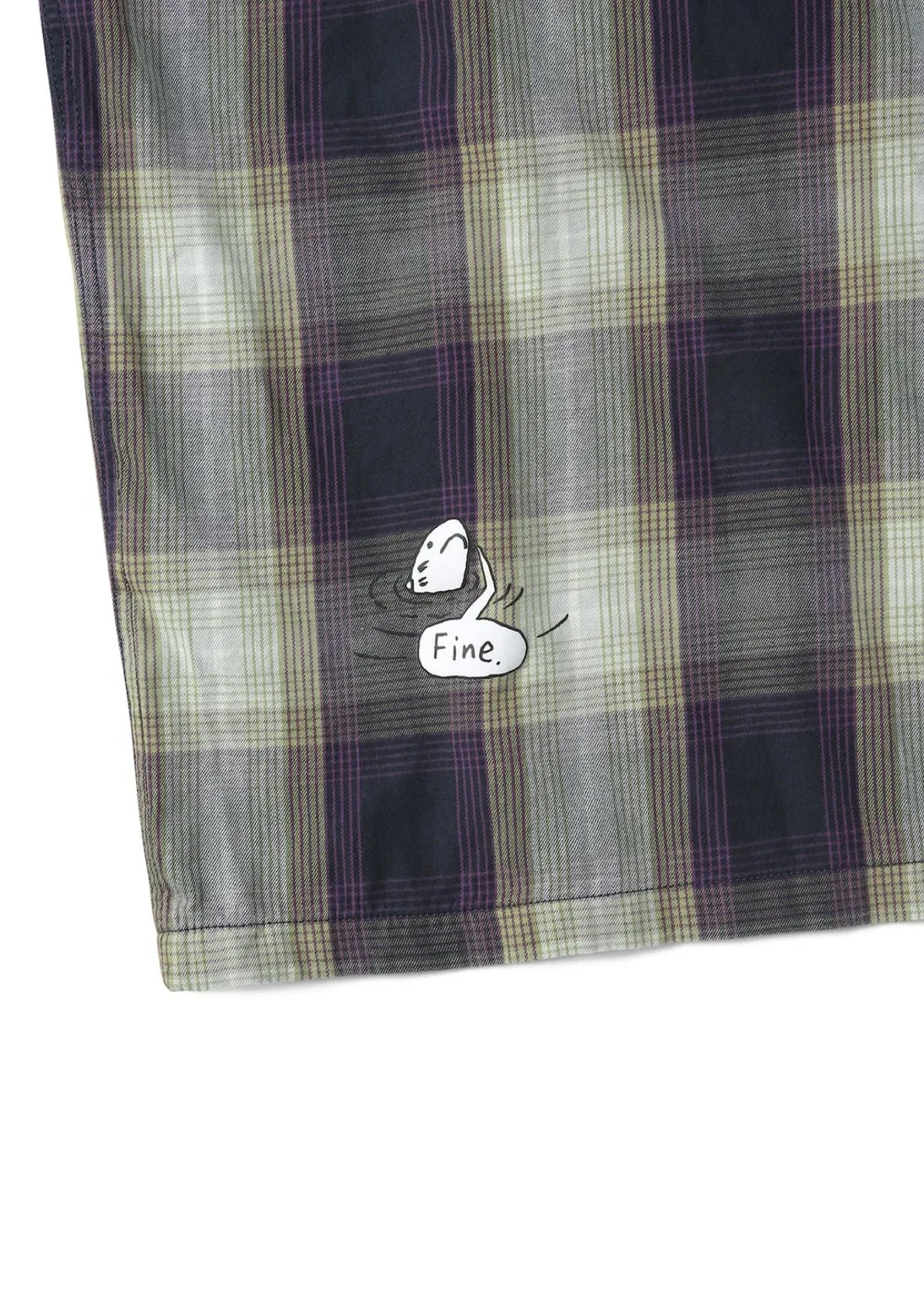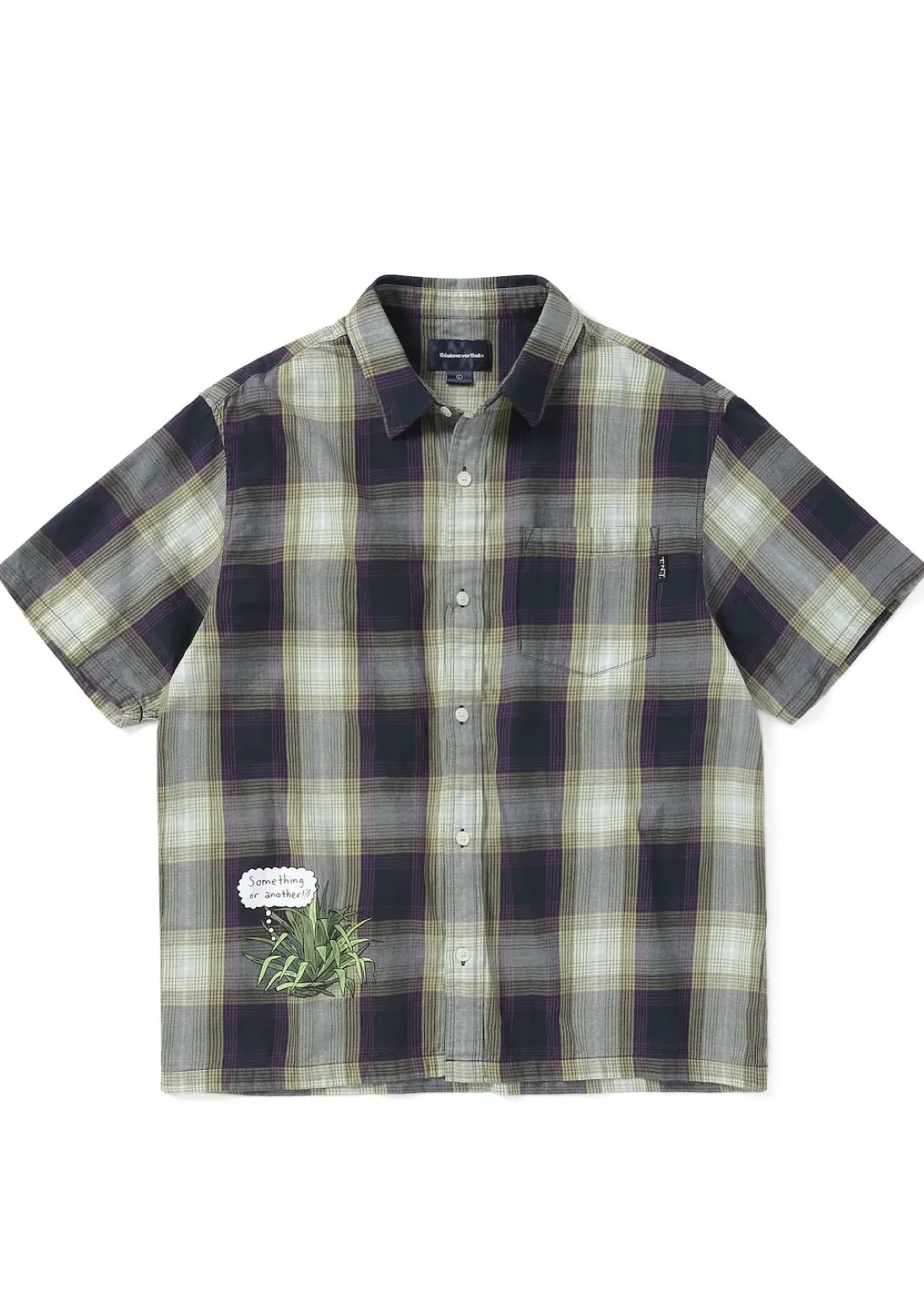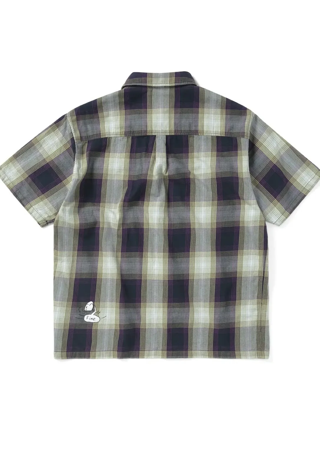 tint018小草圖案漸層格紋襯衫 黃紫 藍綠