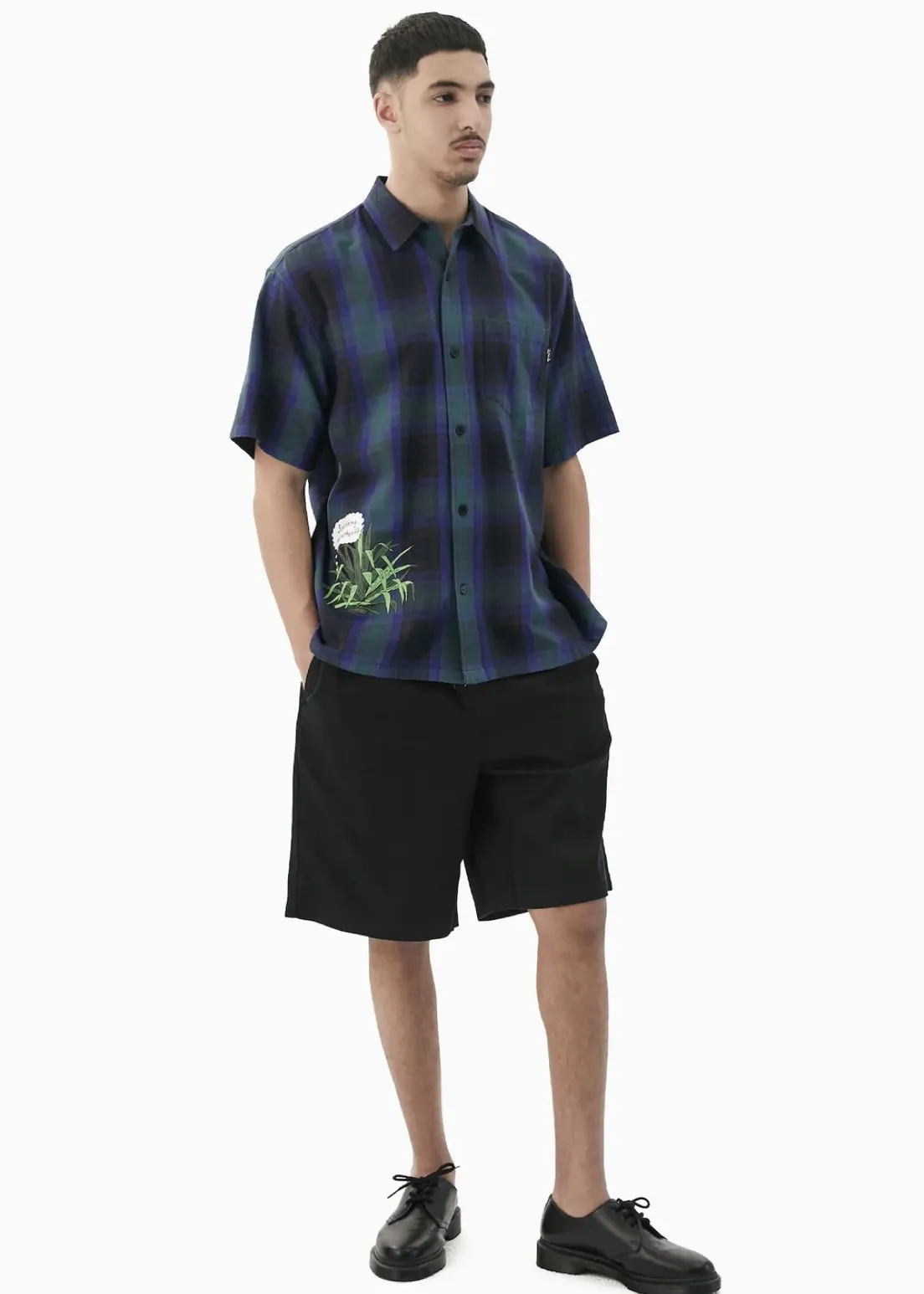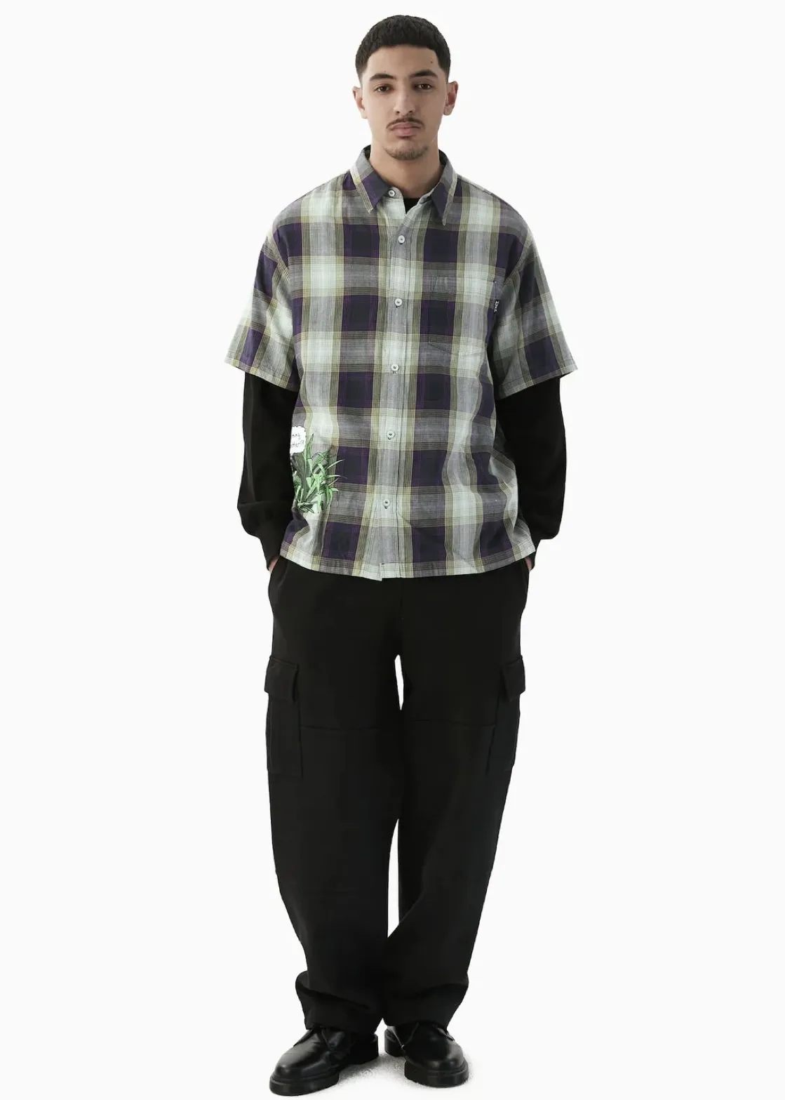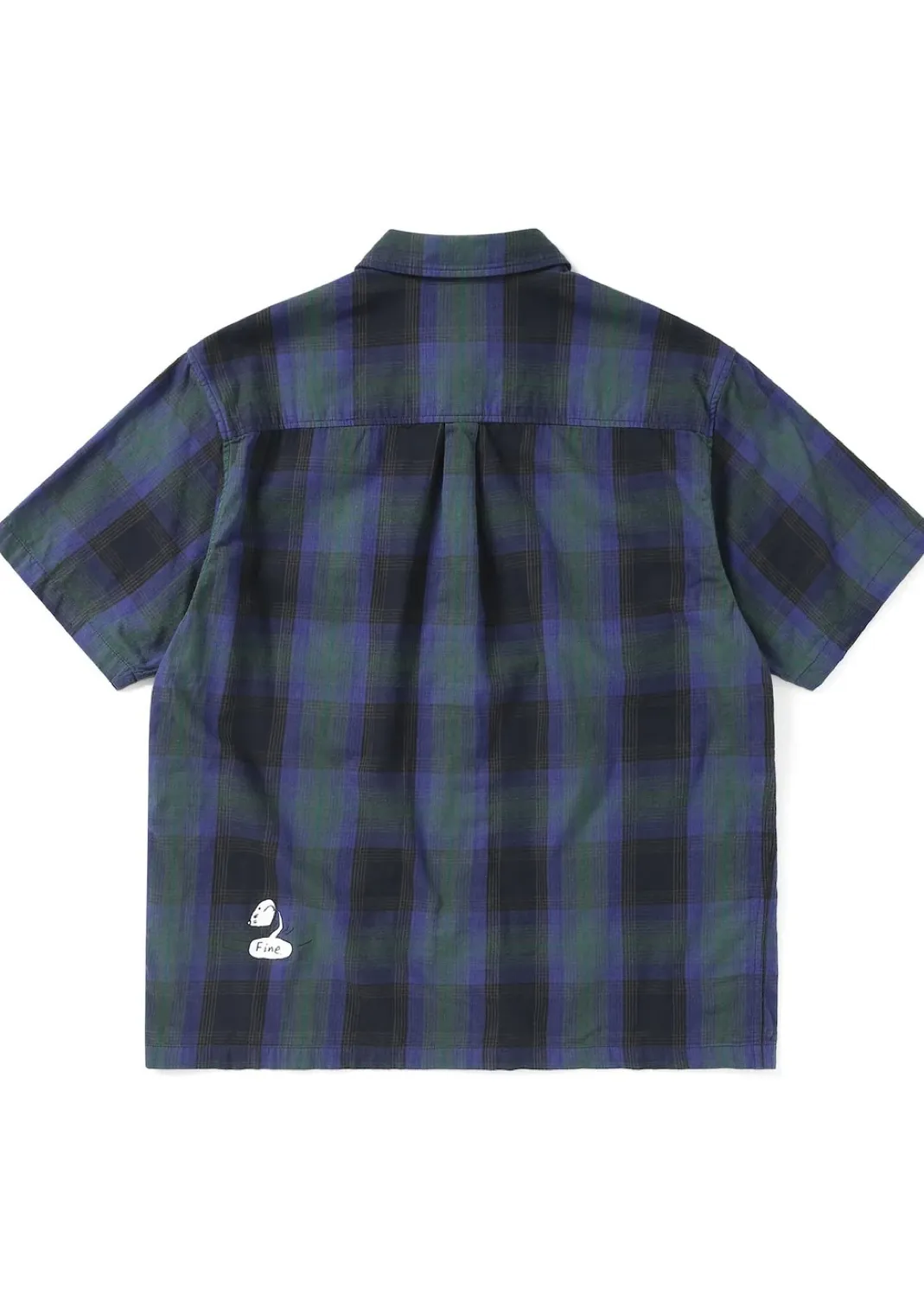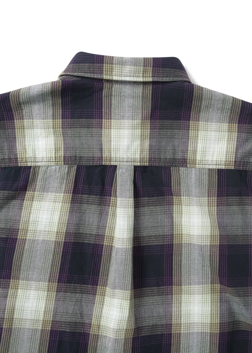tint018小草圖案漸層格紋襯衫 黃紫 藍綠