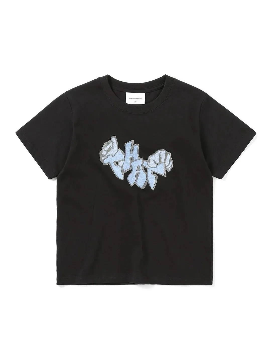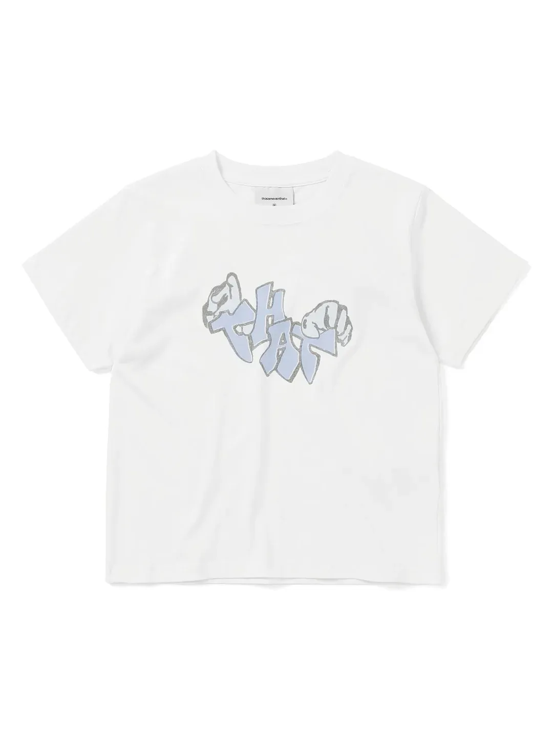 tint027女款街頭塗鴉THAT短袖上衣 白 粉 黑 S M $1380
